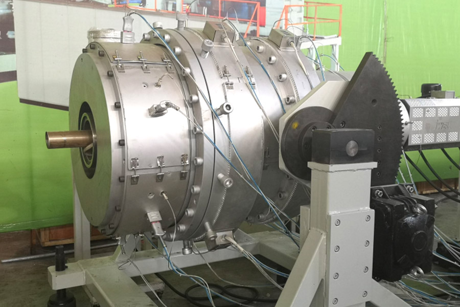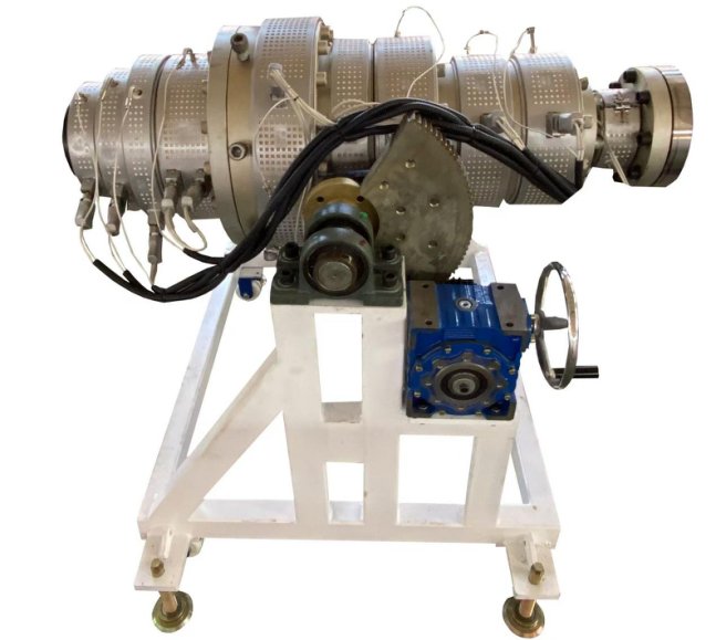 Форма определяет наружный диаметр и толщину стенки трубы. Спиральная экструзионная головка обеспечивает низкую температуру расплава, хорошее перемешивание и стабильное производство.